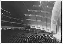 Keeper of the Flame premiered at the Albee Theatre in Cincinnati on January 28, 1943, setting a box-office record for the city. Following a few other limited dates in February, it had a premiere at New York City's Radio City Music Hall on Thursday, March 18, 1943.[48] The premiere served as a fundraiser for the Outdoor Cleanliness Association (a group dedicated to public lighting and enforcement of trash laws).[49] The premiere did not go well: MGM head Louis B. Mayer stormed out, enraged by his having encouraged the making of a film that equated wealth with fascism.[50] It opened in Los Angeles at Grauman's Chinese Theatre on Thursday, April 1, 1943.[51] Keeper of the Flame made its Australian premiere at the Metro Theatre in Melbourne in June 1943.[52] It didn't appear on American television until March 1957.[53]