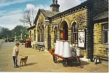 A preservation society was formed in 1962 of rail enthusiasts and local people which bought the line from BR and reopened it on 29 June 1968 as a heritage railway.[8] The first train to leave Keighley for Oxenhope on that date was the only train to operate anywhere on the network due to a national train strike.[9] The line is now a major tourist attraction operated by 500+ volunteers and roughly 10 paid staff. It carries more than 100,000 passengers a year.[10]