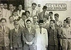 On 9 January 1943, the Japanese administration set up a magazine called Djawa Baroe.[3] It was a propaganda magazine which promoted literary works based upon Greater East Asian literature. In order to remove Western influences, the propaganda they published in Djawa Baroe included slogans that demonizes the allies, and the cruelty of the Dutch. While most of the writers at Djawa Baore were Japanese, there were also Indonesian writers, musicians, playwrights and theater artists involved with the magazine.[3][4]