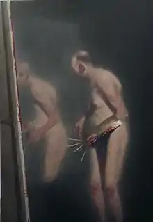 Ken Currie (born 1960 in North Shields, North Tyneside, England) is a Scottish artist and a graduate of Glasgow School of Art (1978–1983). Ken grew up in industrial Glasgow. This has had a significant influence on his early works. In the 1980s Currie produced a series of works that romanticised Red Clydeside depicting heroic Dockworkers, Shop-stewards and urban areas along the River Clyde.[1][2] These works were also in response to then British Prime Minister Margaret Thatcher's policies that he believed were the greatest threat to culture of labour.