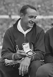 Kenneth George Wiesner (February 17, 1925 – March 20, 2019) was an American high jumper who won a silver medal at the 1952 Olympics. Wiesner attended Marquette University, where he was a three-time NCAA high jump champion.[3] After the 1946 season he retired and became a dentist at U.S. Navy. He returned to compete at the 1952 Olympics, and in 1953 broke the world indoor record three times.[4]