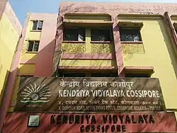 Kendriya Vidyalaya Cossipore is a school offering both primary and secondary education in Cossipore, Kolkata. It is a Kendriya Vidyalaya, operating under the auspices of the Central Board of Secondary Education. The school opened in 1983.[1] The school is situated near to Dum Dum, 7 km away from Netaji Subhas Chandra Bose International Airport, 12 km away from Howrah Railway Station and 8 km from Sealdah Railway Station.[2]