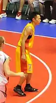 Kenichi Takahashi (高橋 憲一, Takahashi Ken'ichi, born December 22, 1980), nicknamed Shocho, is a former Japanese professional basketball player and served for Akita Northern Happinets of the B.League as the ambassador.[1] Takahashi is currently the instructor for Toreiku Katagami.[2] He was selected by the Sendai 89ers with the third overall pick in the 2006 bj League draft. He has played for the four Tohoku clubs of the bj league. In October 2015 he became a one-day honorary police chief at the Akita Higashi Police Station. Since then a police officer salute has become popular among Akita's boosters.[3][4] Takahashi studies NBA to improve his game,[5] and he is an Air Jordan collector.[6] His retirement memorial game was held at Akita Prefectural Gymnasium on October 29, 2017.[7][8]