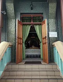 The Keramat is housed at the top of the hill at 37 Palmer Road, with 49 steps leading to it. The steps leading to Habib Noh's tomb, as well as the room housing the tomb is adorned with green and yellow furnishing such as curtains. Green and yellow are the chosen colours due to their significance in Islam, which is a recurring theme that is observed in other Muslim cemeteries as well.[2][3] Behind the tomb of Habib Noh lies the tomb of Sayid Abdur Rahman bin Salim Al Habsyi, the cousin of Habib Noh.[4]