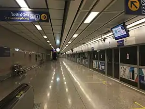 Uses a Thai house as its symbol, representing Plai Noen House Museum and color orange.[1] Its underground station, widths 28 metres, lengths 202 metres, depths 18 metres and uses side platforms