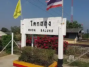 Khok Salung railway station is a railway station located in Khok Salung Subdistrict, Phatthana Nikhom District, Lopburi Province. It is a class 3 railway station located 176.55 km (109.7 mi) from Bangkok railway station.[1][2] From November until January of the following year, the Pa Sak Jolasid Dam excursion train runs across the Pa Sak Jolasid Reservoir viaduct and terminates at this station, using it as a switchback for the locomotive for the return trip to Bangkok.