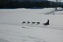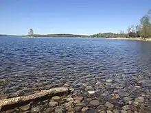The Kiamika, meaning "steep rock", has an area of 52 kilometres (32.31 mi). The regional park of which it is part has an area of 184.8 kilometres (114.83 mi).[2] The "Île de la Perdrix Blanche", like the "small island of La Perdrix", are the two main islands of the reservoir and the largest in Kiamika. They measure 11.7 kilometres (7.27 mi) and 5.4 kilometres (3.36 mi) respectively. The reservoir may see its area decrease to 35 kilometres (21.75 mi) during the emptying normally carried out in April. This large tidal range exposes sandy beaches on the shores and connects the two main islands.[2]