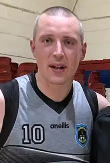 Kieran Donaghy (born 1 March 1983) is an Irish Gaelic footballer and basketball player. He plays for Tralee club Austin Stacks and, formerly, at senior level for the Kerry county team. Donaghy won four All-Ireland Senior Football Championship medals, eight Munster Championships and three National League titles with Kerry, and is the recipient of three All Stars Awards. He announced his retirement from inter-county football on 11 September 2018.[1][2][3] Donaghy is also a long-time basketball player, currently playing for Tralee Warriors in the Irish Super League.