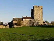 Attached to the castle is a later two-story house, with a larger and more modern house in the grounds. It is roofed, with a low, two-storey, three-bay house with narrow windows and simple doorcase added. In the tower is a chimney-piece dated 1580 and a panelled room.[3][4] Beside the house are early brick walls with blank arches.