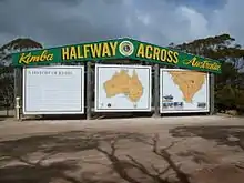 Kimba is a rural service town on the Eyre Highway at the top of Eyre Peninsula in the Australian state of South Australia. At the 2016 census, Kimba had a population of 629 and it has an annual rainfall of 348 millimetres (13.7 in). There is an 8-metre (26 ft) tall statue of a galah beside the highway, marking halfway between the east and west coasts of Australia. The Gawler Ranges are north of the highway near the town.
