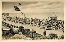 During the summer of 1904, the band of the Corps of the Royal Engineers performed in the bandstand.[12] From 1904 to the 1950s, during the summer season there was a different repertory theatre show, concert party or Pierrot show every week.[3][36] A regular repertory company was Harry Hanson's Court Players.[52] Throughout the year there were regular dances to bands led by, for example, Ted Heath, Syd Lawrence and Eric Delaney. The Wylie Price orchestra, the regular tea dance band at the Central Bandstand, usually performed at the town's new year party in the Hall. The yearly selection dance for Miss Herne Bay, the carnival queen, always took place here, and as of 2005 was continuing to do so.[36] In 1927 Herne Bay hosted eleven different bands including the Buffs. Guest bands performed at The King's Hall bandstand in the morning, then at the Central Bandstand in the afternoon or evening. At the end of the day, the East Kent Bus Company provided a fleet of double-decker buses to transport the audience home to Whitstable and Canterbury.[52]