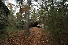 King Phillip's Cave is a cave in Norton, Massachusetts near Lake Winnecunnett. It may be accessed from Stone Run Drive off Plain Street near Bay Road and sits on a 7-acre (28,000 m2) parcel of land owned by the Land Preservation Society, an independent non-profit conservation organization chartered in 1970 by the State of Massachusetts.[1]