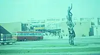 The first phase of the Kingdom Centre was built around Central Avenue, between North Street and Church Street in the eastern portion of the town centre. This was in the form of two to three storey shop and business units orientated around a modern Pedestrian zone creating what is now Lyon Square, Albany Gate, Kintyre Gate and Postgate. A three-storey glazed butterfly roof and a modern fountain were incorporated as features in the design around the main public square.[7] The Golden Acorn Hotel, a ten pin bowling alley, the town's Post Office, job centre and a bus turning circle were all delivered as part of the early phases of development. A Co-Op Department store opened in 1964 at the eastern entrance to the square and a town clock was built as a feature adjacent to the store.[8][9]