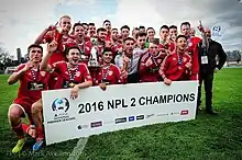 On 3 September 2016, Kingston City achieved promotion from to NPL Victoria in dramatic circumstances. Needing to avoid defeat on the final match-day of the regular season, Damian Iaconis scored a 94th-minute equaliser to achieve automatic promotion into the top flight.[4] In the 2016 NPL2 Grand Final, Kingston City came back from 2–0 down to win 3–2 against St Albans Saints, with Slaven Vranesevic scoring two near-identical free kicks, and Kingston were crowned NPL Victoria 2 Champions. Velibor Mitrovic was top goalscorer with 19 goals.[5]