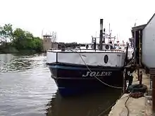 Originally, the Kinnickinnic River flowed almost directly into Lake Michigan, with water from the Milwaukee and Menomonee rivers flowing south from the center of the city before exiting to the lake. The landform that protected the harbor was a long marshy spit, called Jones Island, that extended southwards from the center of the city. To shorten the distance from the harbor entrance to the city, a "straight cut" was made across the base of the spit, at the northern end.[3] The original harbor entrance was filled in, so that Jones Island was now a peninsula extending northwards, with its base to the south. This effectively lengthened the river, and this new stretch now formed a large portion of the harbor.
