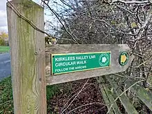 The Circular Walk is a footpath that starts at Brandleshome Road in Greenmount. It encompasses the sites of Tottington and Kirklees Printworks; the Enterprise Centre and Kirklees Country Café; and Holcombe Hunt. The trail is indicated by Green Arrows on signposts, gateposts, and benches.