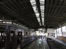 Kitano-Hakubaichō Station (北野白梅町駅, Kitano-Hakubaichō-eki) is a station in Kita-ku, Kyoto, Japan, operated by Keifuku Electric Railroad. It has two bay platform tracks.[3]