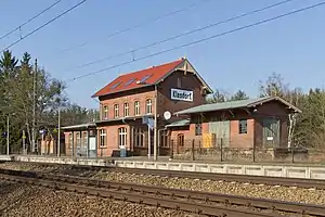 Klasdorf Glashütte is a railway station in the village of Klasdorf in the municipality of Baruth/Mark, Brandenburg, Germany. The station lies of the Berlin–Dresden railway and the train services are operated by Deutsche Bahn.
