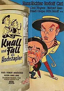 Knall and Fall as Imposters (German: Knall und Fall als Hochstapler) is a 1952 Austrian-German comedy film directed by Ulrich Bettac and Hubert Marischka and starring Hans Richter, Rudolf Carl and Curd Jürgens.[1] It was followed by a 1953 sequel Knall and Fall as Detectives.