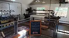 The overall site comprises several buildings, all dating to the nineteenth or early twentieth centuries. The mill itself was originally a single-storey rectangular building, but the addition of a two-storey carding and spinning mill led to its current L-plan design. Both parts of the building are rubble-built with corrugated iron roofs, and there is a large weatherboarded lean-to extension, also with a corrugated iron roof, added in the late nineteenth century to house equipment.[1] This building contains a number of pieces of historic machinery, including two Victorian looms, made by Hutchinson, Hollingworth & Co., which are thought to be the oldest looms still to be in use.[2]