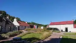 There is a shop, built for that purpose in the late nineteenth century and still used as such.[1][2] It is a single-storey square-plan rubble-built structure, to the south-east of the main mill.[1] The building currently used as a visitor centre was originally a byre. Built in the late nineteenth-century, it is a simple, rectangular building, with plain weatherboarding and a corrugated iron roof. An early twentieth-century sawmill is attached at the west gable, and a modern extension is attached to the north wall.[2]