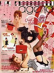 Koakuma Ageha (小悪魔ageha, lit. "Little-devil (or demon) Swallowtail [butterfly]"[3]) is Japanese magazine that introduces the latest fashion and lifestyle trends popular among hostesses that is published twice a year, with the main target audience being women in their teens to 20s. Fans of the magazine are also referred to as "agejo" (age嬢, a combination of "Ageha" and "Lady") and often members of the Gyaru subculture.[4]