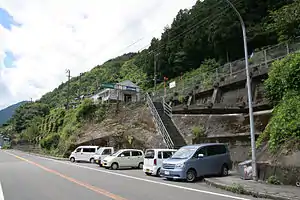 The station, which is unstaffed, consists of two side platforms serving two tracks on a side hill cutting. From the main road (National Route 32, a flight of steps leads up to a small building which serves as a waiting room. Another short flight of steps leads up to one platform and a pedestrian level crossing is used to access the other platform. A small parking area is provided at the side of the main road.[2]
