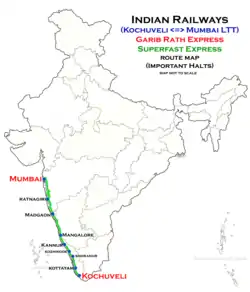 Kochuveli Lokmanya Tilak Terminus Garib Rath Express is a Superfast Express express train of the Garib Rath Express category belonging to Indian Railways - Southern Railway zone that runs between Kochuveli and Lokmanya Tilak Terminus in India.