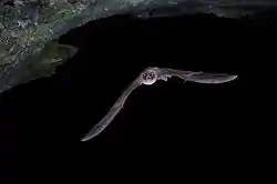 These bats are mostly found in the main chamber as well as the bat passage.[1][2] Considering the large population of bats, unexpectedly thin guano deposits are found.