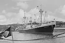 The Koninklijke Nederlandse Stoomboot-Maatschappij (KNSM) (Royal Netherlands Steamship Company) was an Amsterdam-based shipping company that existed from 1856 to 1981. It was once the largest company in Amsterdam and one of the top five shipping lines in the Netherlands. The company operated mid-sized freighters that had limited passenger accommodations. At its peak in 1939, the company had 79 vessels. Of these, 48 were lost during World War II.