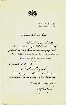 Official letter from the King of Belgians hoisting the fraternity to the rank of Royal Society.