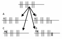 A match consists of at least three games. When beginning a match, the scorer draws the scoring diagram (1st illustration). A team wins a game if all of its lines have been crossed out. By convention the scorer's team is always shown in the lower row. Various factors affect the game score: