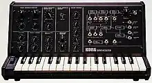 Korg MS-10 is an analogue synthesizer created by Korg in 1978.[2] Unlike its bigger brother, the Korg MS-20, the MS-10 only has one VCO, one VCF and one envelope generator. It is monophonic and has 32 keys.