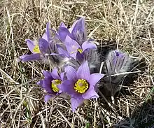 Steppe-like vegetation grows here mostly. The place is also valued as one of the richest populations of greater anemone (Pulsatilla grandis) in Central Moravia; in the 2004 census, 19,699 blooms were counted here. Other notable plants growing here are snowdrop anemone (Anemone sylvestris), European Michaelmas daisy (Aster amellus), sickle hare's ear (Bupleurum falcatum), Blue Sedge (Carex flacca), Downy-fruited Sedge (Carex tomentosa), Carex michelii, European dwarf cherry (Prunus fruticosa), Dorycnium herbaceum, field cow-wheat (Melampyrum arvense), spiny restharrow (Ononis spinosa), military orchid (Orchis militaris), knapweed broomrape (Orobanche elatior), Pilosella macrantha, Primula veris subsp. canescens, fragrant scabious (Scabiosa canescens) and Thesium dollineri.[3] Bigger stones are covered by saxicolous lichens, which are an important indicator of the level of air pollution.[1] The grasslands need to be maintained and shrubs of black locust (Robinia pseudacacia), common dogwood (Cornus sanguinea) and European privet (Ligustrum vulgare) have to be regularly removed here.[4]
