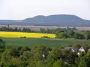 Overall, the average ridge height is 100 – 200 meters above the surrounding territory, or 350 – 400 meters above sea level. At the base of the ridge is a layer of white chalk, which may be up to 100 meters thick. This is overlaid by a layer of sand, laid down by the Galician Sea 15-20 million years ago, over which are layers of sandstone and limestone.[2] Over all is a layer of Quaternary yellow loess and loams, 10 – 30 meters thick.