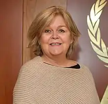 Árnadóttir was originally hired as assistant to the mayor of Reykjavik in 1994. On 29 December 2000 by unanimous decision by the four members of the City Council, she was appointed Director of Development and Information from 2001-2005, later continuing her work in the mayor's office.[2][3] She was given leave in July 2007 to act as project manager of Iceland's bid to join the UN Security Council, which was voted on in October 2008.[4][5] She was immediately after the UN vote given the position of head manager and ambassador for the newly combined offices of Minister and Secretary of State within the Icelandic Ministry of Foreign Affairs in November 2008.[6]