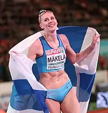Meri Kristiina Mäkelä (born 20 November 1992) is a Finnish athlete whose specialty is the triple jump.[1] She has competed in two Olympics and four World Athletics Championships, with the best result of 9th in 2022 . Her personal bests in the event are 14.64 m outdoors (achieved in 2022 in Munich, Germany) and 14.38 m indoors (2019, Gallur, Madrid, Spain).