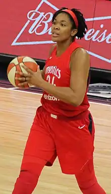 In February 2017, Thomas signed with the Washington Mystics.[8] During the 2017 season, Thomas would have the best season of her career. After the first four games of the season, Thomas was moved from the bench to starting center in the Mystics lineup. On August 4, 2017, Thomas scored 3 points and grabbed a career-high 20 rebounds in a 76–74 loss to the San Antonio Stars.[9] On August 12, 2017, Thomas scored a career-high 20 points along with 14 rebounds in a 100–80 win over the Indiana Fever.[10] By the end of the season, Thomas would average new career-highs in scoring, rebounding, steals, assists and blocks. Following the league's new playoff format from the previous season, the Mystics would finish as the 6th seed in the league with an 18–16 record. In the first round elimination game, the Mystics defeated the Dallas Wings 86–76. Thomas scored 5 points along with 17 rebounds in the win. In the second round elimination game, the Mystics defeated the number-3 seeded New York Liberty 82–68, advancing past the second round for the first time in franchise history. Thomas scored 11 points along with 6 rebounds in the win. In the semi-finals, the Mystics would be defeated by the Minnesota Lynx in a 3-game sweep.