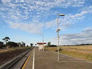 The current platform was constructed in 1961; by around 1987 the current platform shelter had been installed. It is one of the least used on the entire network, due to it being located in a semi-rural area between the suburban areas of Munno Para, Evanston and Gawler.