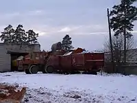 The Kushaverskoye peat railway's first line was constructed in 1967, in the area of Khvoyninsky District, Novgorod Oblast from the village Yubileyny to the swamp peat fields. The peat railway was built for hauling milling peat and workers and operates year-round. The total length of the Kushaverskoye peat narrow-gauge railway at the peak of its development exceeded 60 kilometres (37 mi), of which 16 kilometres (9.9 mi) is currently operational.[2]