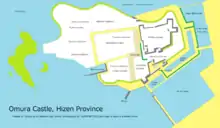 Kushima Castle (玖島城, Kushima-jō), also known as Ōmura Castle (大村城, Ōmura-jō) from its location, is a Japanese castle located in Ōmura, Nagasaki Prefecture, Japan.[1]