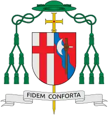 László Böcskei (Hungarian pronunciation: [ˈlaːsloː ˈbøt͡ʃkɛi]; born July 11, 1965) is a Romanian cleric, bishop of the Roman Catholic Diocese of Oradea Mare. Born into an ethnic Hungarian family in Gătaia (Gátalja), Timiș County, he studied at the Roman Catholic Theological Institute of Alba Iulia. He was ordained in June 1990 by Bishop Sebastian Kräuter and assigned to the Timișoara Diocese. He served as assistant priest at a Timișoara parish before being assigned to the city's St. George Cathedral. In 2006, having reached the age of 75, József Tempfli announced his intention to retire as Bishop of Oradea Mare, and Pope Benedict XVI chose Böcskei as his successor. He was consecrated bishop in March 2009.[1]