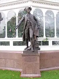 Amongst the works he completed were eight statues of famous naturalists and explorers. Commissioned in 1896, they stand outside at the eight angles of the Palm House in Sefton Park, Liverpool.[1] The marble statues are of the naturalists Carl Linnaeus, Charles Darwin, John Parkinson (a botanist), and André le Nôtre (a landscape gardener). The bronze statues are of the explorers and navigators Henry the Navigator, Gerardus Mercator, Christopher Columbus, and Captain James Cook.