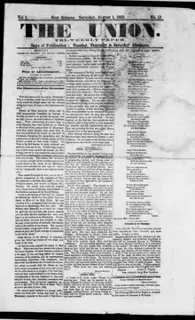 L'Union was the first African-American newspaper in the Southern United States.[lower-alpha 1] The newspaper was based in New Orleans, Louisiana, and was published from 1862 to 1864. Articles in L'Union were written in the French language, with the newspaper's primary readership being free people of color in the New Orleans area, especially Faubourg Marigny and Faubourg Tremé.[2]