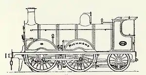 The LB&SCR Richmond class, 0-4-2 express passenger locomotives, were designed by William Stroudley of the London Brighton and South Coast Railway in 1877. They were a larger version of his "Lyons" class (D2) which were in turn developed from his successful "D-tank" class of 1873.