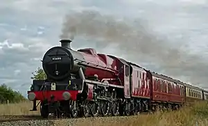 In May 2014, it made its first ever operational visit to a heritage railway, when it visited the Mid Norfolk Railway at Dereham for their West Coast Railways steam gala, during which it ran alongside fellow Carnforth-based engines LMS Rebuilt Royal Scot 4-6-0 no 46115 Scots Guardsman and LMS Stanier Class 8F 2-8-0 no 48151. All three engines ran in triple-headed formation from Carnforth to Dereham on Thursday 29 May. The three engines then ran during the three day gala from Friday 30 May to Sunday 1 June. The following day, Monday 2 June, the three engines returned to Carnforth along with the nine Mark 1 coaches that had been provided for the gala because most coaches at the Mid Norfolk Railway are air-braked, whereas the three engines and the Mark 1 coaches are vacuum-braked.