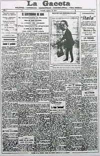![]() La Gaceta's first frontpage (August 4, 1912) |