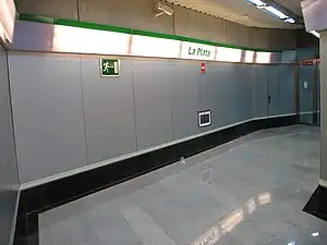 La Plata (English: The Silver) is a station of the Seville Metro on the line 1.[1] It is located at the intersection of Los Gavilanes Av. and Virgen de la Saleta St., in the neighborhood of Parque Amate. La Plata is an underground station, located between Amate and Cocheras on the same line. It was opened on 2 April 2009.