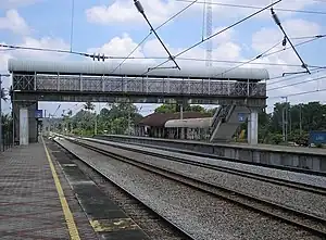 Located between a village and a large palm oil estate, the station previously served KTM Intercity train services from 1903 to 1995 and now is served by the Seremban Line KTM Komuter train services, but located along a four-lane railway (two acceptance routes at both ends and two basic routes in the middle), the station is also in charge of managing railway switches and supports a small railway staff. The station, like many stations of lesser importance along the KTM Komuter lines, has only two platforms for northbound or southbound passengers.[1]