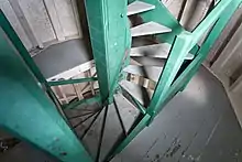 The inside of the lighthouse is divided into four storeys with timber floors. A central weight tube provides support to a winding timber stair that goes up to the third level. Access to the fourth level, the gallery and the lantern is via a fixed ladder.[24]